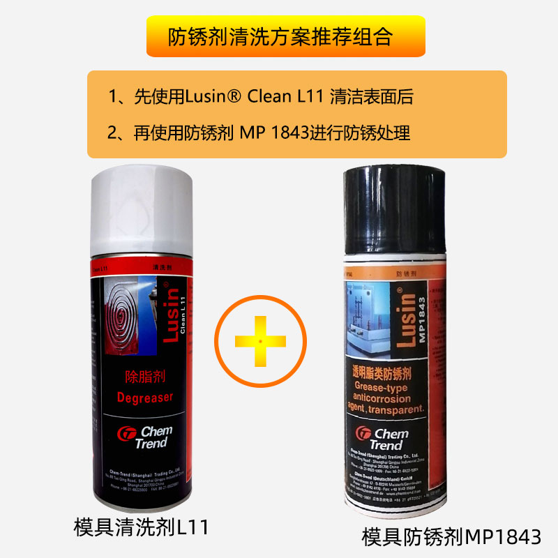 Lusin MP1843 可以通过生产时让防锈剂转移到生产的零件的方式去除而无需清洗,也可以使用模具脱脂剂 Lusin Clean L 11去除。如果需要对零件进行后续处理,例如,金属涂层、上漆等,我们建议进行测试后使用。